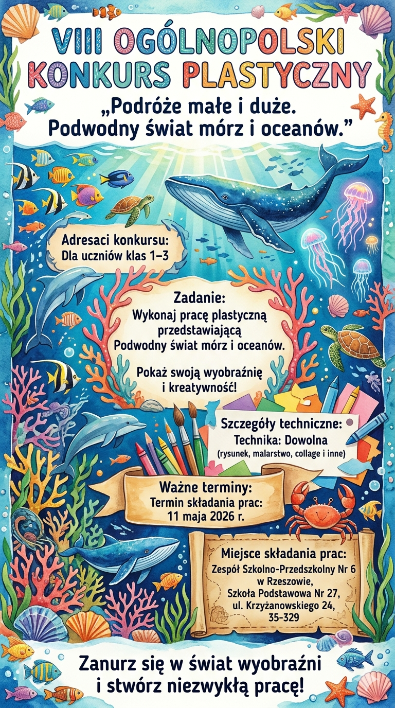 Zespół Szkolno-Przedszkolny Nr6 w Rzeszowie, Szkoła Podstawowa Nr 27 w Rzeszowie zaprasza dzieci z klas 1-3 szkoły podstawowej z całej Polski do udziału w ogólnopolskim konkursie plastycznym.